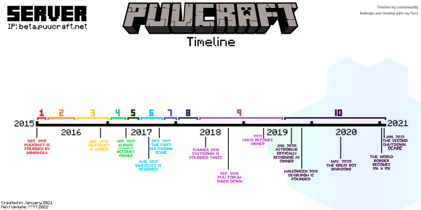 This website is designed to serve as a replacement for the out-of-date official Puucraft website that was last updated in 2018 (5y). The purpose of this website is to keep the puucraft players more up-to-date than waht a 5 year ild website can do, considering how much can change in 5 years.